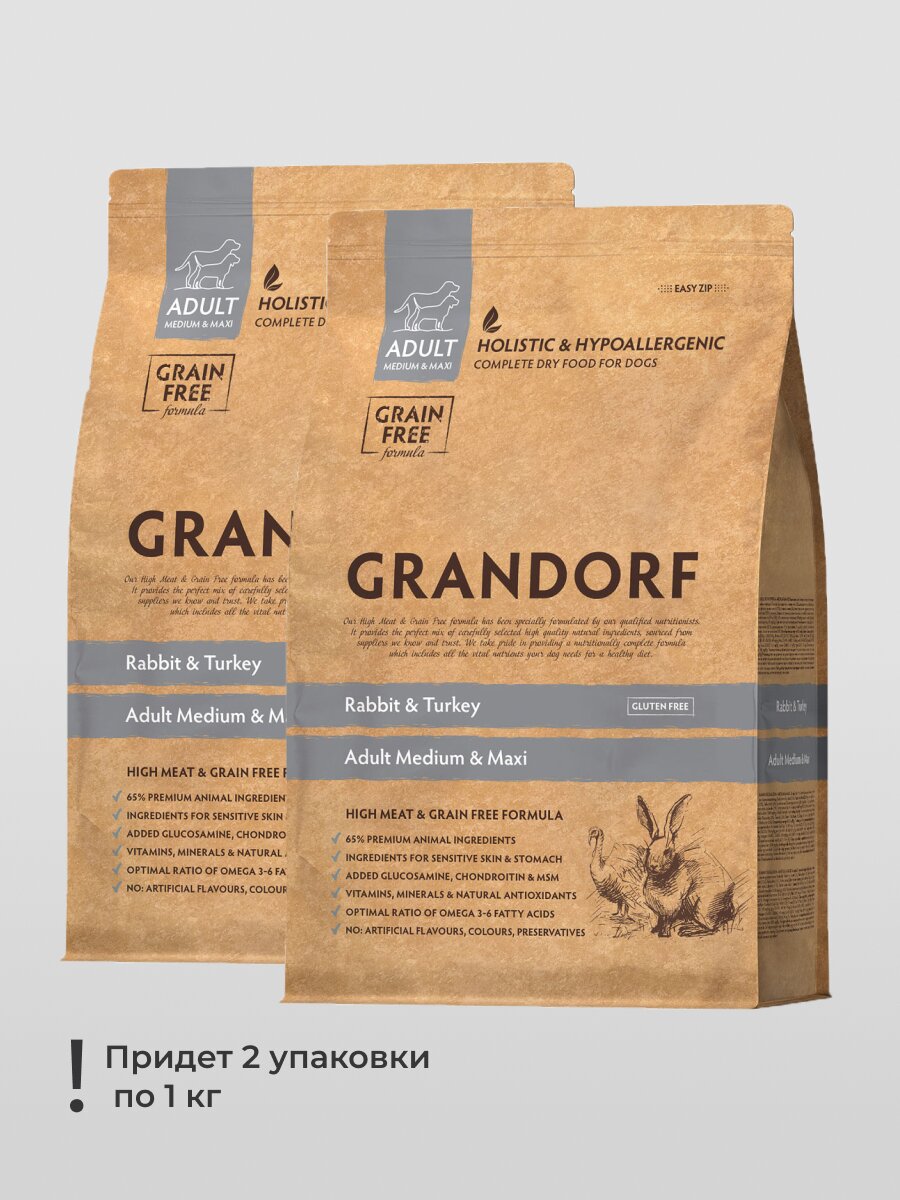 Купить Сухой корм Grandorf Rabbit & Turkey для взрослых собак средних и крупных пород Кролик и индейка, 1 кг х 2 шт. с доставкой по всей России. Сухой корм Grandorf Rabbit & Turkey для взрослых собак средних и крупных пород Кролик и индейка, 1 кг х 2 шт.: сравнение цен, характеристики, фото, актуальное наличие и цены.