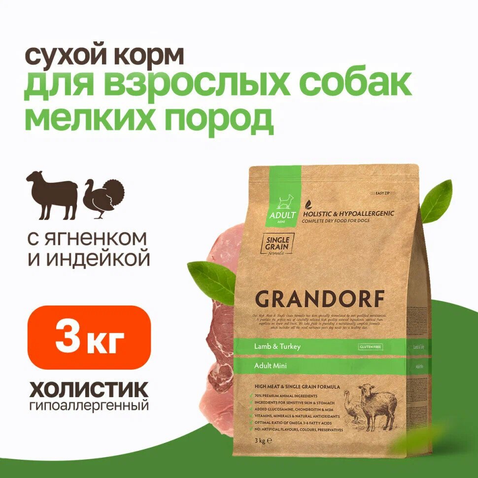 Grandorf Lamb & Turkey Mini корм для взрослых собак мини пород Ягненок и индейка, 3 кг.