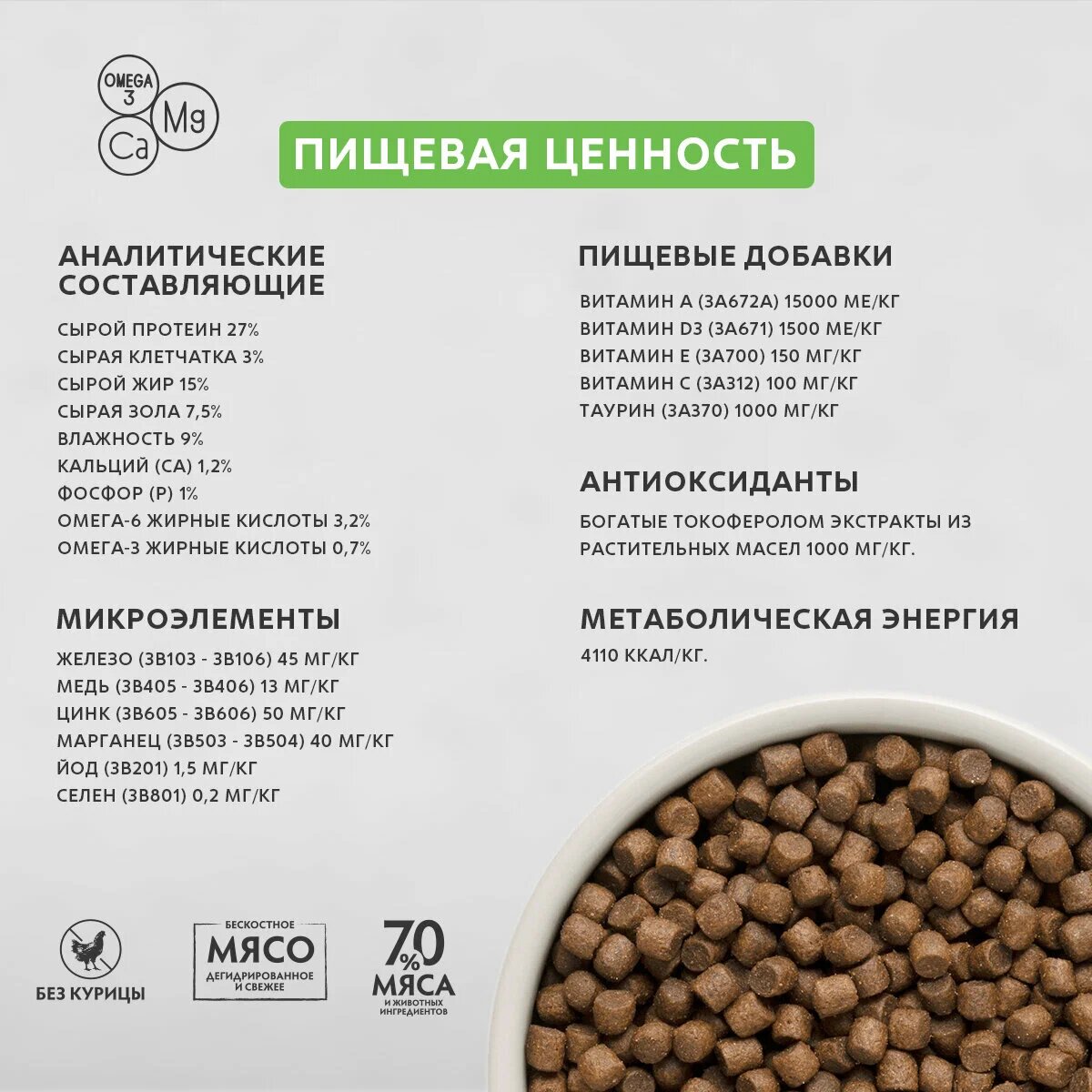 беззерновой, гипоаллергенный, для активных животных, для беременных/кормящих, для здоровья кожи и блеска шерсти, для здоровья костей и суставов, для профилактики МКБ, для снижения запаха стула, для ухода за ротовой полостью, при склонности к избыточному весу, при чувствительном пищеварении