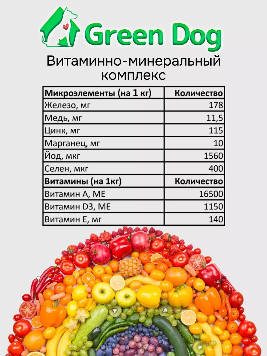 Сухой полнорационный корм премиум класса Green Dog предназначен для всех пород собак среднего и крупного размера весом от 10 до 60 кг. Этот продукт производится в России и соответствует стандартам качества, установленным ГОСТ Р 55453. Корм подойдет для животных, нуждающихся в особенном внимании к своему здоровью, включая кастрированных, стерилизованных особей и тех, кто имеет предрасположенность к набору лишнего веса. Преимущества Основной белок: мясо говядины, которое легко усваивается организмом животного и обеспечивает полноценный рацион белком высокого качества. Диета: гипоаллергенная формула способствует поддержанию здоровья кожи и шерсти, снижает риск возникновения аллергии. Витамины и минералы: комплекс необходимых питательных веществ поддерживает общее состояние организма, укрепляет иммунитет и улучшает обмен веществ. Здоровье суставов: содержащийся в составе хондроитин и глюкозамин поддерживают здоровье костей и суставов, обеспечивая активность даже пожилых собак. Фрукты и овощи: еда для собак содержит натуральные ингредиенты, повышающие уровень антиоксидантов и укрепляя иммунную систему. Комплекс зерновых: помогает обеспечить энергию и насыщение животного полезными углеводами. Особенности питания Корм сухой разработан специально для взрослых собак разных пород, учитывая потребности каждого возраста и образа жизни. Это идеальный выбор для тех владельцев, кто заботится о здоровом рационе своего любимца. Собачий корм поставляется в трёхслойных фольгированных изнутри пакетах с зиплоком, которые удобно хранить. Теперь вы можете быть уверены, что ваш питомец получает все необходимое для здоровых зубов и хорошего пищеварения.
