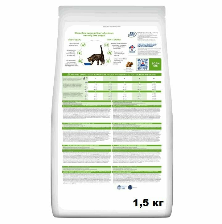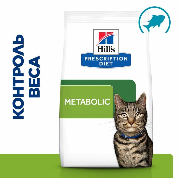 Корм для кошек Hill'S Prescription Diet Feline Metabolic Weight Solution продается по 1,5 кг в пакетах. Он рекомендован в качестве диетического питания для домашних питомцев, склонных к полноте. Регулярное употребление продукта с пониженной калорийностью способствует поддержанию оптимального веса.