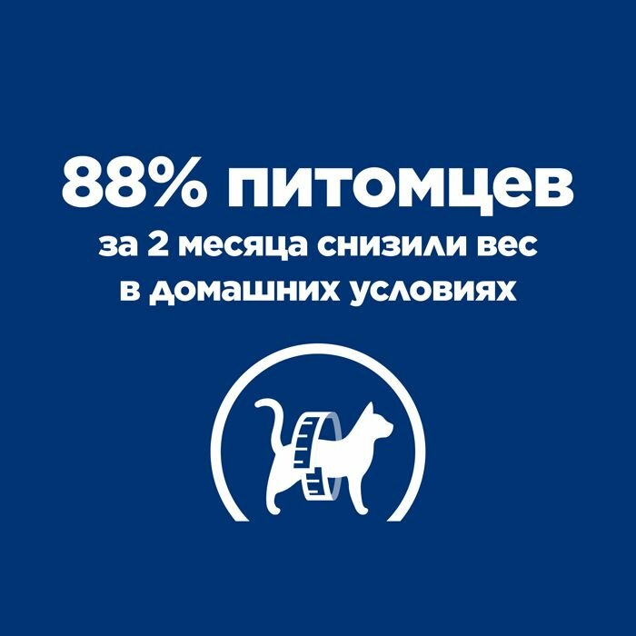 Корм Hill'S Feline Metabolic Advanced Weight Solution помогает снизить жировую массу тела животного на 28% за два месяца курсового употребления. Он не содержит ароматизаторов, усилителей вкуса, консервантов, ГМО и других химических добавок.