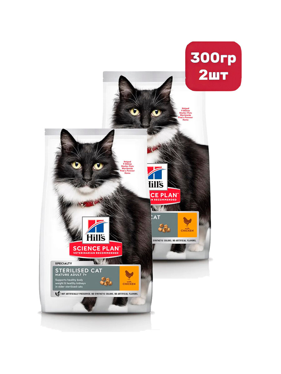 Купить Сухой корм Hill’s Science Plan для взрослых стерилизованных кошек старше 7 лет, курица, 300 г, 2 шт. с доставкой по всей России. Сухой корм Hill’s Science Plan для взрослых стерилизованных кошек старше 7 лет, курица, 300 г, 2 шт.: сравнение цен, характеристики, фото, актуальное наличие и цены.