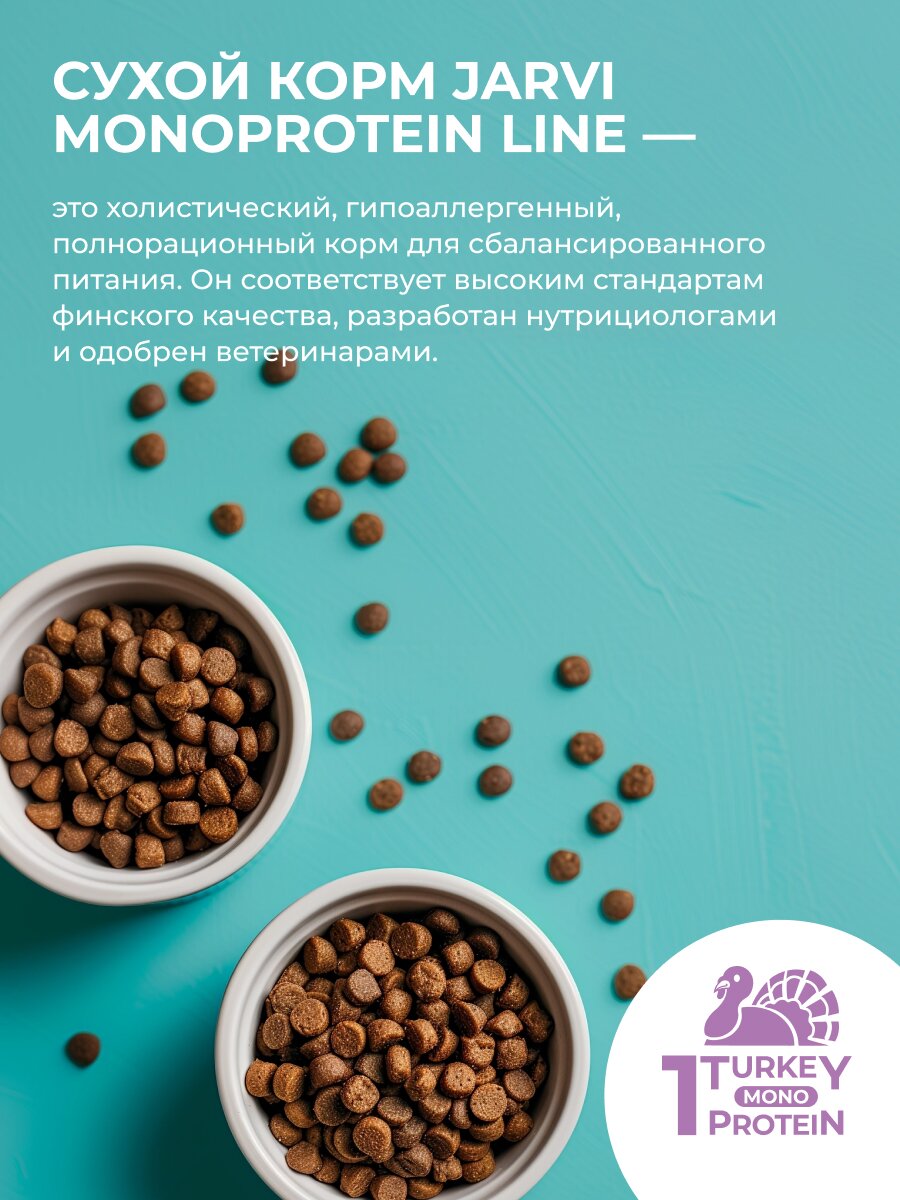 Сухой корм Jarvi монопротеиновый полнорационный для взрослых собак мелких пород, Индейка 3 кг: сравнение цен, характеристики, фото, актуальное наличие и цены.