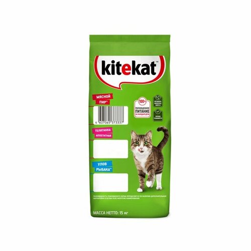 Kitekat™ «Мясной пир» — полноценное питание для кошек на каждый день. Состав корма разработан профессионалами: в нем содержатся белки, жиры, а также незаменимые витамины (D3, B5, B6 и др.), минералы (кальций, фосфор, магний и др.), полезные жиры, масла и таурин в правильной пропорции. Благодаря клетчатке корм хорошо усваивается, поддерживая здоровье пищеварительной системы, а за счет своей сбалансированности он подойдет и стерилизованным питомцам. Для оптимального контроля веса питомца и заботы о здоровье ротовой полости и мочевыводящей системы рекомендуется сочетать сухой корм с влажными рационами Kitekat™. Качество корма Kitekat™ проверено временем — это источник жизненных сил и энергии для многих поколений кошек! Пищевая ценность: Содержание питательных веществ (100 г): белок – 26 г; жир – 10 г; клетчатка – 3 г; зола – 9 г; кальций – 1,5 г; фосфор – 0,9 г; витамин А – 1200 МЕ; витамин Д – 120 ME; витамин Е – 5,5 мг. Энергетическая ценность (100 г): 340 ккал / 1422 кДж. Состав: злаки и продукты их переработки, муки животного происхождения, гидролизат куриного белка, животные жиры и растительные масла (в том числе подсолнечное масло), свекловичный жом, соль, минеральные вещества, витамины, аминокислоты (в том числе таурин), красители, антиоксиданты, морковь сушёная. Условия хранения: Хранить при температуре от +4 до +35°С и относительной влажности воздуха не более 75%. Рекомендации по кормлению: В миску следует насыпать сразу всю суточную норму, поскольку кошка сама знает, когда и сколько есть. Как правило кошки едят 2-3 раза в день. При смешанном кормлении чередуйте влажные и сухие рационы в течение дня. Количество корма при кормлении сухими рационами KITEKAT™ (вес кошки, кг - корма в день, г): 2 кг - 39 г, 3 кг - 52 г, 4 кг - 63 г, 5 кг - 74 г. Количество корма при смешанном кормлении рационами KITEKAT™ (вес кошки, кг - вес сухого корма, г + количество пакетиков влажного корма, штук): 2 кг - 19 г + 1, 3 кг - 32 г + 1, 4 кг - 43 г + 1, 5 кг - 54 г + 1. Внимание! Свежая питьевая вода должна быть в постоянном доступе у Вашего питомца. Если раньше Вы не кормили Вашего питомца сухим полнорационным кормом, то переход на него должен быть плавным. Постепенно увеличивайте количество сухого корма KITEKAT™ в привычной еде в течение недели.