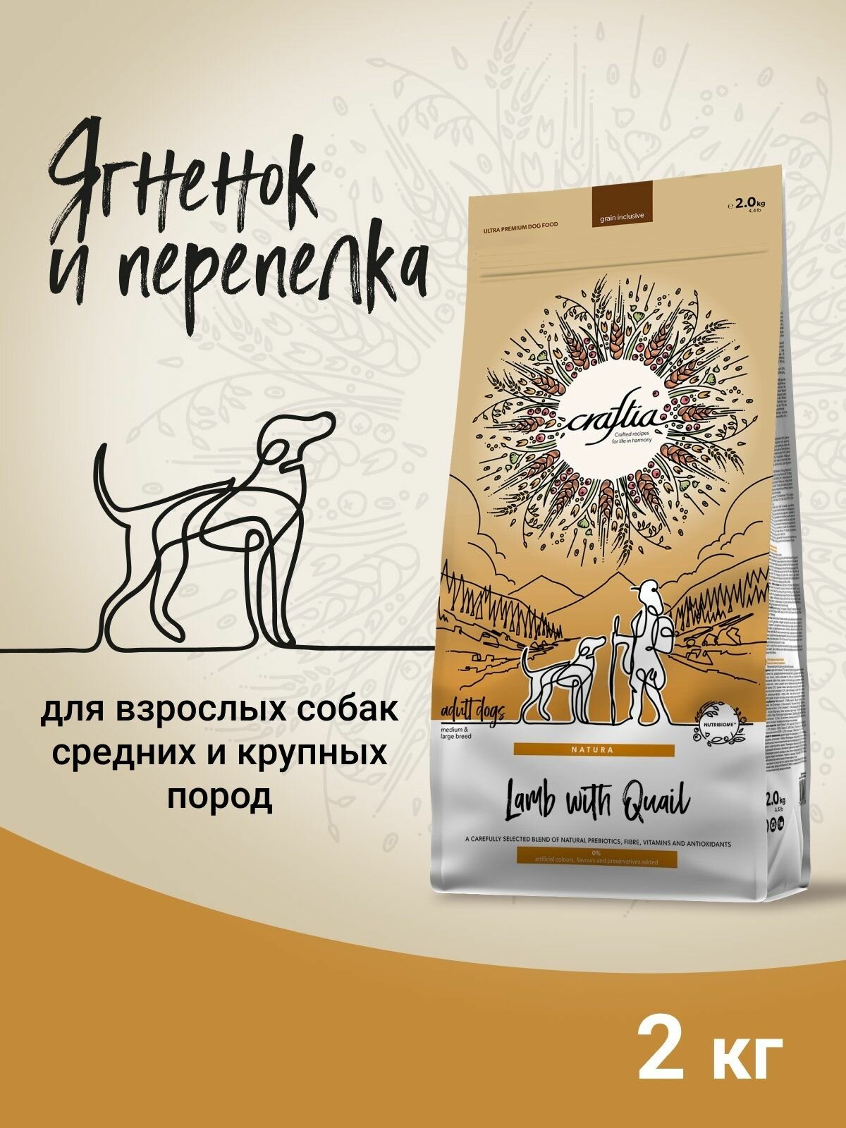 Craftia Natura - Сухой корм для взрослых собак средних и крупных пород из ягненка с перепелкой (2 кг)