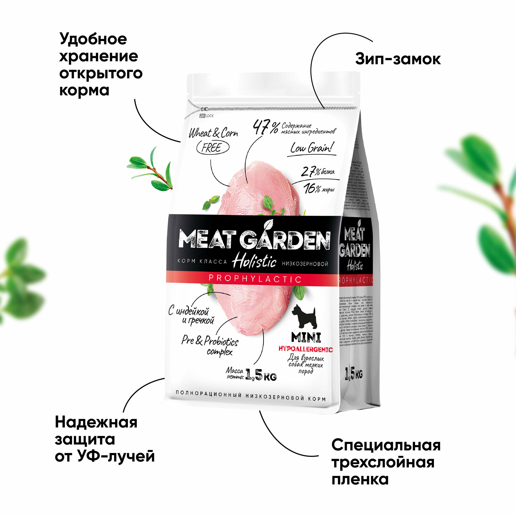 Сухой корм Meat Garden - для собак мелких пород, склонных к аллергии, индейка с гречкой, 1.5 кг, 1шт Вес: 1,5 кг.