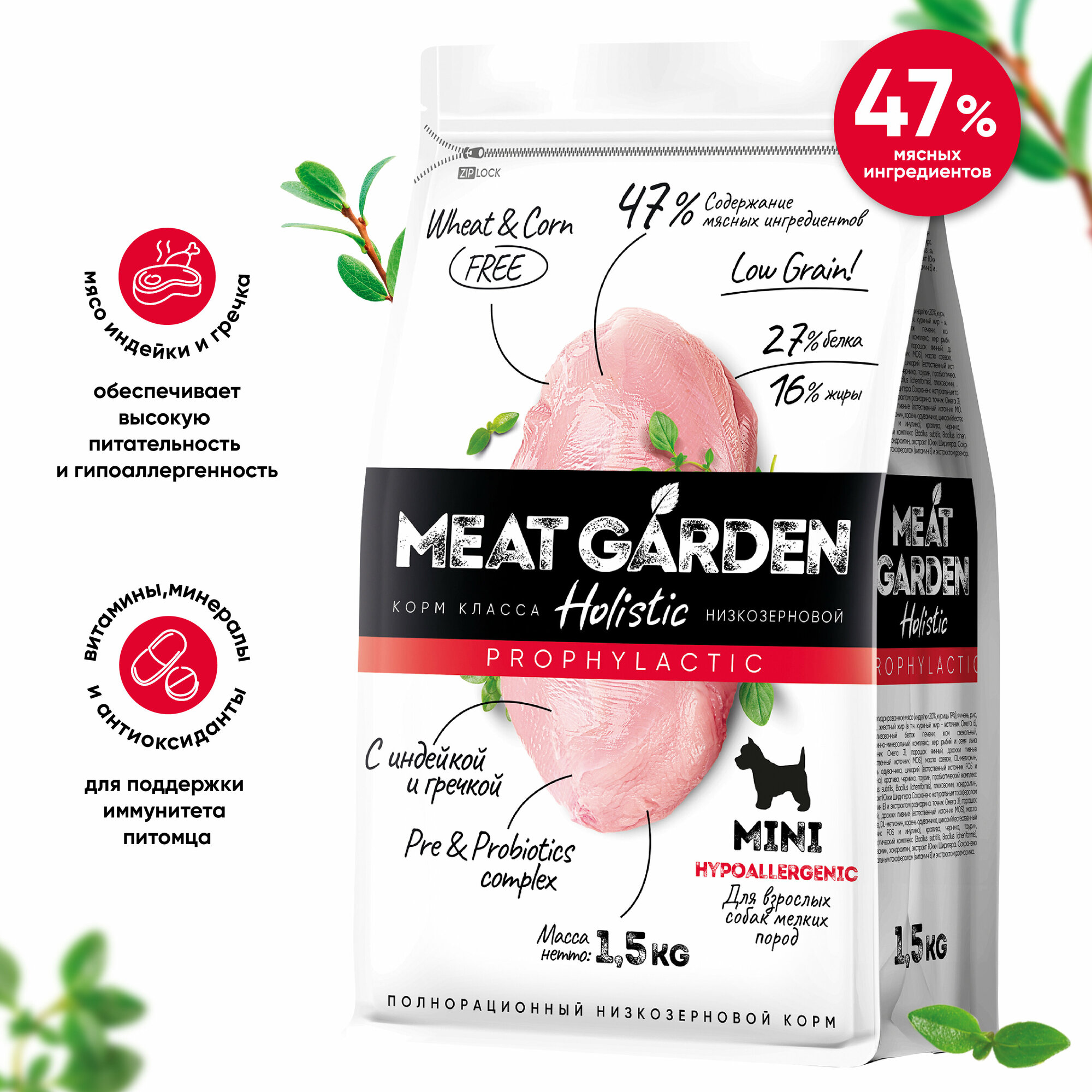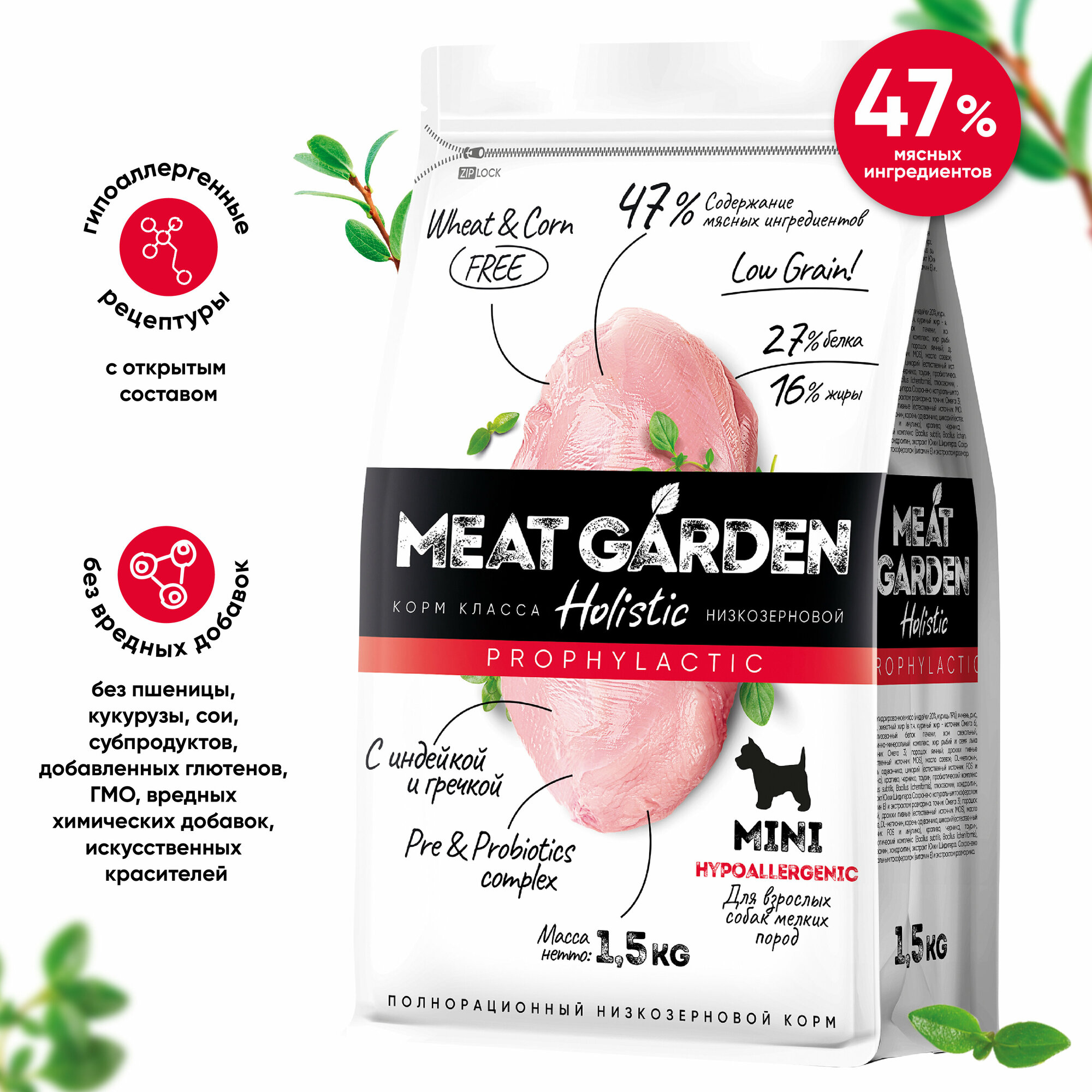 Купить Сухой корм Meat Garden Hypoallergenic для собак мелких пород с индейкой и гречкой 1,5 кг с доставкой по всей России. Сухой корм Meat Garden Hypoallergenic для собак мелких пород с индейкой и гречкой 1,5 кг: сравнение цен, характеристики, фото, актуальное наличие и цены.