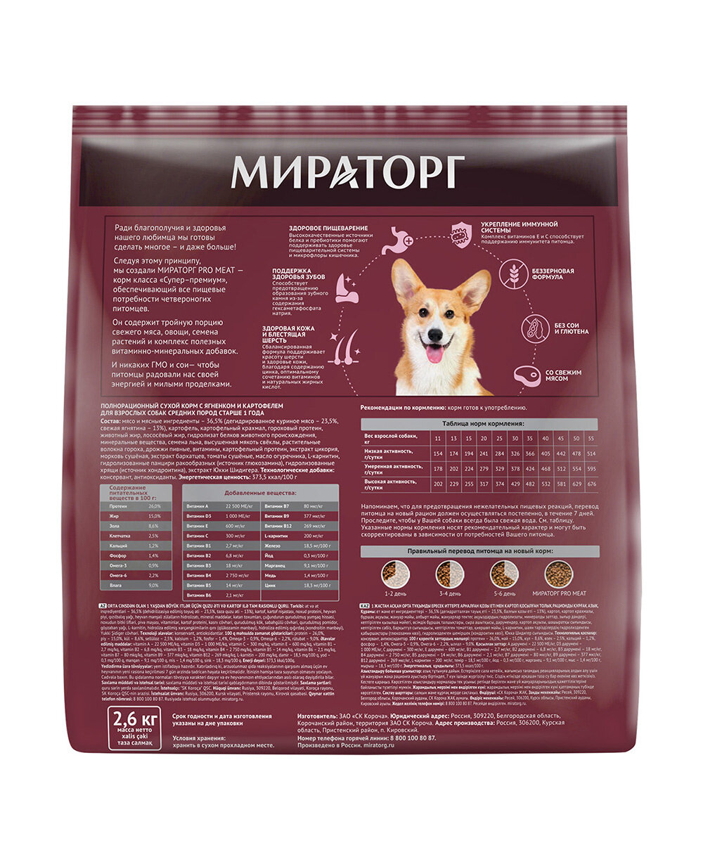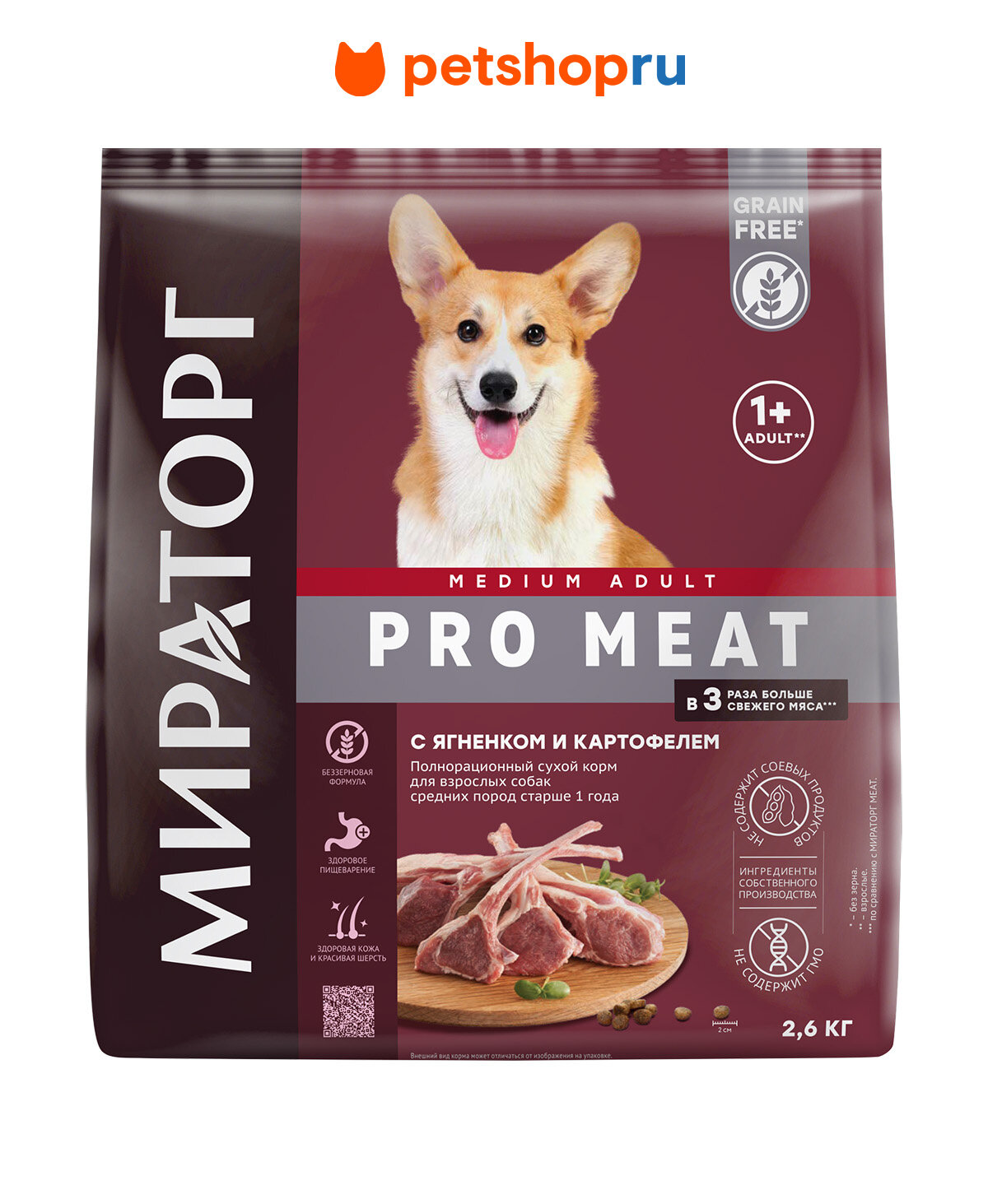 Сухой корм с ягненком для собак средних пород супер-премиум класса PRO Meat - это полноценный сбалансированный рацион, который является оптимальным выбором для кормления собак средних размеров и сочетает в себе специально отобранные питательные вещества, которые поддерживают особые потребности питомцев и сохраняют их здоровье на протяжении всей жизни.