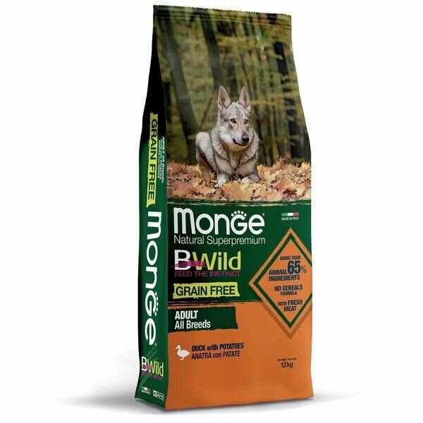 Купить Сухой корм Monge Bwild Dog Low Grain Монж низкозерновой для взрослых собак всех пород, Утка , 12 кг с доставкой по всей России. Сухой корм Monge Bwild Dog Low Grain Монж низкозерновой для взрослых собак всех пород, Утка , 12 кг: сравнение цен, характеристики, фото, актуальное наличие и цены.