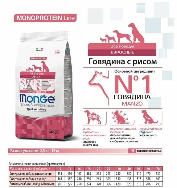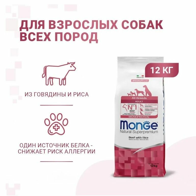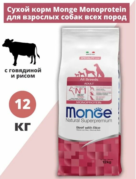 Купить Сухой корм Monge Dog Speciality Line Monoprotein All Breeds Beef and Rice для взрослых собак всех пород, из говядины с рисом 12 кг с доставкой по всей России. Сухой корм Monge Dog Speciality Line Monoprotein All Breeds Beef and Rice для взрослых собак всех пород, из говядины с рисом 12 кг: сравнение цен, характеристики, фото, актуальное наличие и цены.