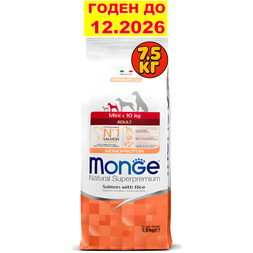 Monge Dog Speciality Line Monoprotein Mini Adult — сухой корм для взрослых собак мелких пород, лосось с рисом, 7.5 кг