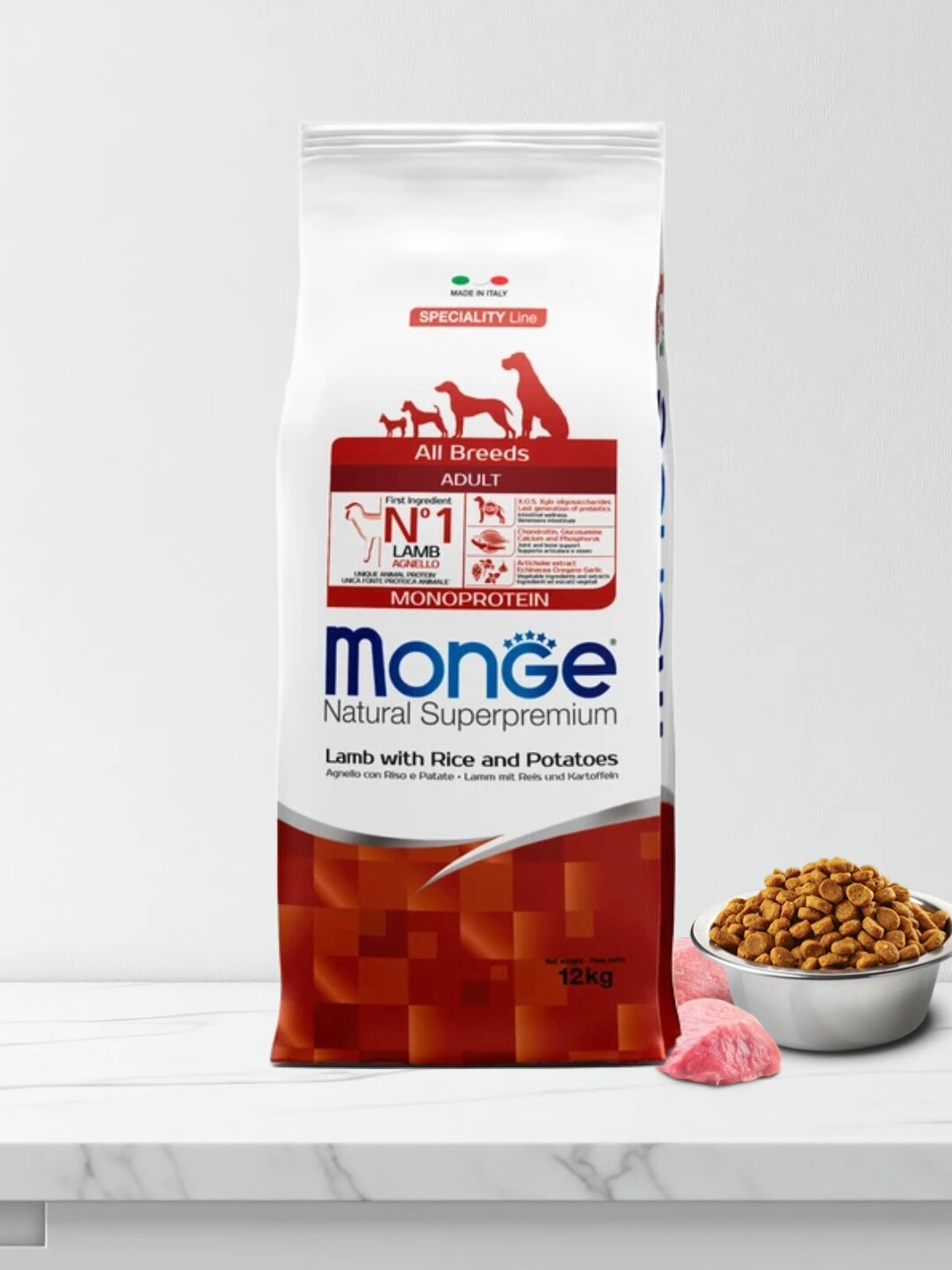 Купить Сухой корм для собак всех пород Monge Монж Dog Speciality Line Monoprotein All Breeds (Ягнёнок, рис и картофель) — 12 кг с доставкой по всей России. Сухой корм для собак всех пород Monge Монж Dog Speciality Line Monoprotein All Breeds (Ягнёнок, рис и картофель) — 12 кг: сравнение цен, характеристики, фото, актуальное наличие и цены.