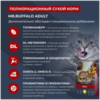 Полнорационный сухой корм Mr. Buffalo для взрослых кошек с курицей включает все необходимые питательные вещества для поддержания жизненных сил и здоровья вашего питомца. Корм содержит уникальную добавку MacroGard® (МакроГард), которая повышает способность кошек справляться со стрессом, стимулирует способность противостоять вирусам, бактериям и грибкам, способствует сбалансированности кишечной микрофлоры. Mr. Buffalo специально разработан для удовлетворения энергетических потребностей взрослых кошек от 1 года. Изготовлен из высококачественных, легкопереваримых ингредиентов, имеет в составе высокий уровень антиоксидантов и витаминов.