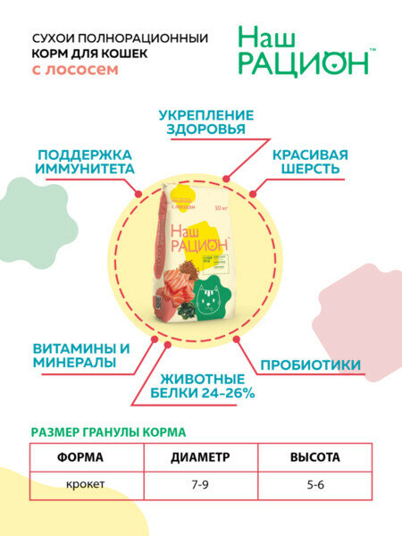 Купить Наш Рацион 10 кг сухой корм для взрослых кошек лосось с доставкой по всей России. Наш Рацион 10 кг сухой корм для взрослых кошек лосось: сравнение цен, характеристики, фото, актуальное наличие и цены.