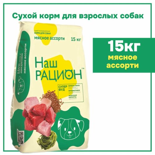 Купить Наш Рацион сухой корм для собак Мясное ассорти с пробиотиками 15кг с доставкой по всей России. Наш Рацион сухой корм для собак Мясное ассорти с пробиотиками 15кг: сравнение цен, характеристики, фото, актуальное наличие и цены.