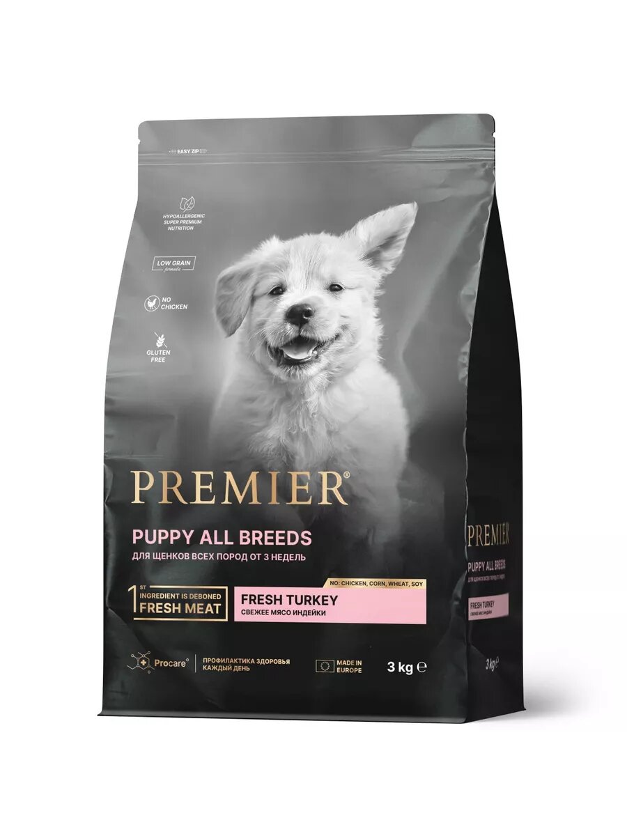 Полнорационный сухой корм супер-премиум класса на основе свежего мяса индейки для щенков всех пород с 3-недельного возраста, беременных и кормящих собак. Тщательно подобранные и прекрасно сбалансированные ингредиенты отвечают всем особым потребностям растущего питомца. Идеально подойдет питомцам склонным к аллергии, поможет укрепить иммунитет и улучшить состояние шерсти и кожи.