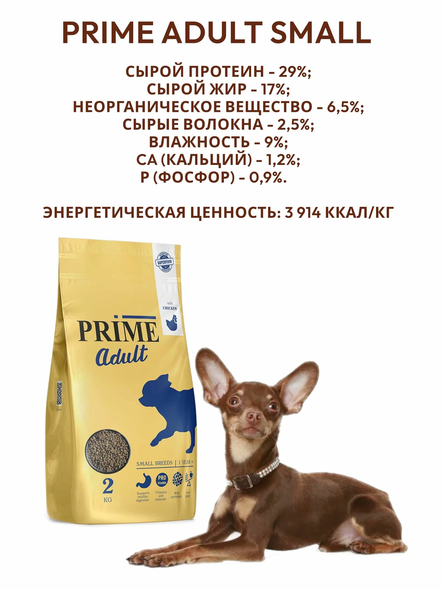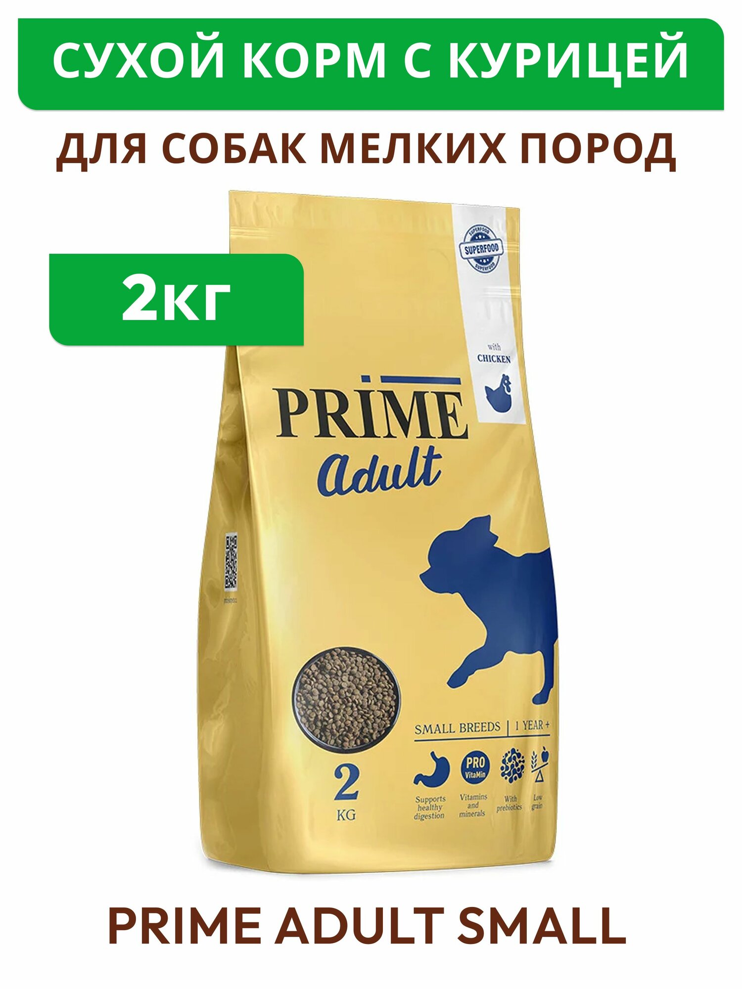 Сухой корм PRIME ADULT SMALL для взрослых собак мелких пород с курицей 2кг: сравнение цен, характеристики, фото, актуальное наличие и цены.