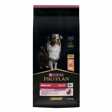 Pro Plan SENSITIVE SKIN 14 кг сухой корм для взрослых собак средних пород с чувствительной кожей, с высоким содержанием лосося: сравнение цен, характеристики, фото, актуальное наличие и цены.
