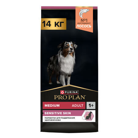 Купить Pro Plan SENSITIVE SKIN 14 кг сухой корм для взрослых собак средних пород с чувствительной кожей, с высоким содержанием лосося с доставкой по всей России.