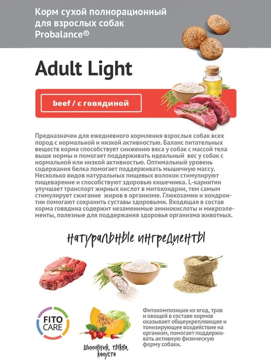 Купить Сухой корм Probalance Adult Light Beef для взрослых собак всех пород Говядина, 12 кг. с доставкой по всей России. Сухой корм Probalance Adult Light Beef для взрослых собак всех пород Говядина, 12 кг.: сравнение цен, характеристики, фото, актуальное наличие и цены.