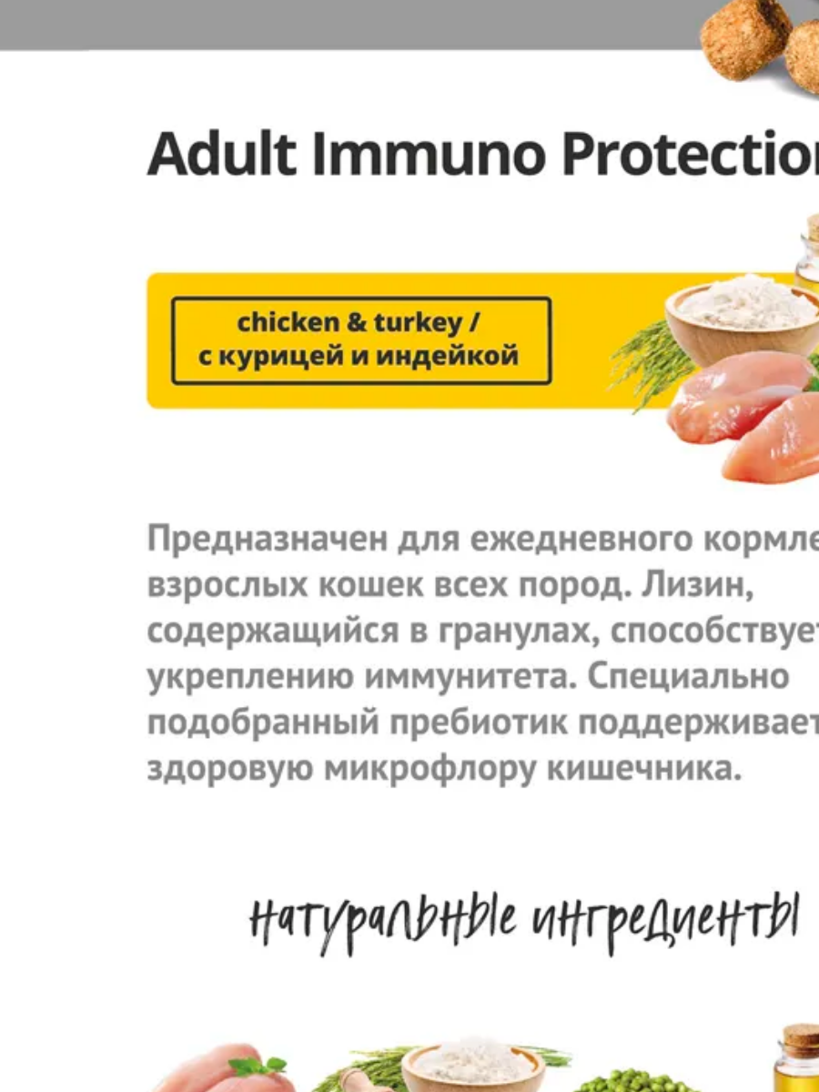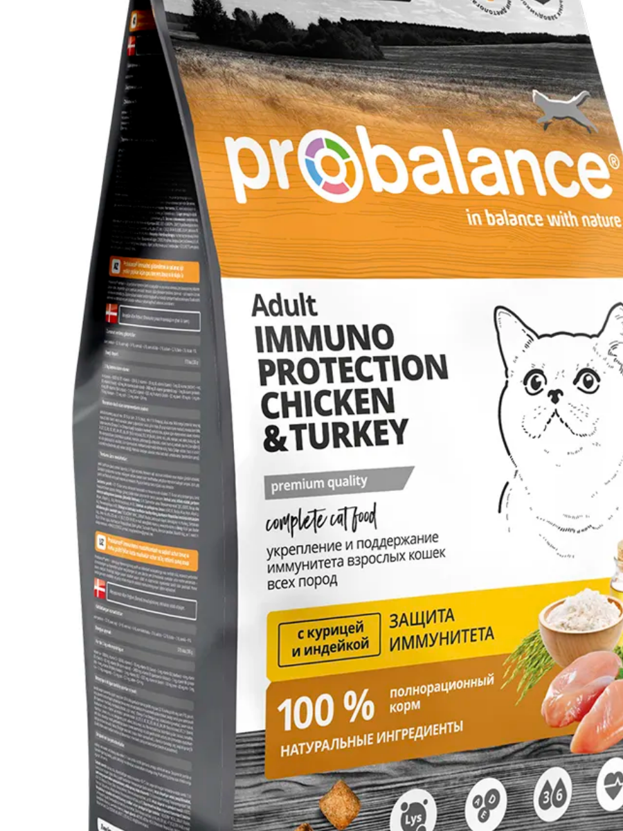 Иммунитет и здоровье кошки зависят от многих факторов. Один из самых важных – правильно подобранное питание. Ветеринары из Дании разработали специальный ежедневный рацион Probalance "Immuno Protection" (Пробаланс "Иммуно Протекшен"), помогающий поддерживать и укреплять иммунитет питомца. Особенность состава корма в том, что он уже содержит весь необходимый набор питательных веществ, минералов и витаминов. Хозяину питомца больше не нужно ломать голову в поисках дополнительных препаратов.
