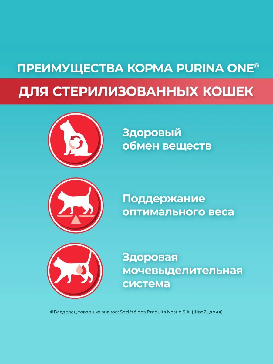 Стерилизация приводит к гормональным изменениям, которые могут повлиять на обмен веществ, привести к набору веса и стать причиной проблем с мочевыделительной системой. Корм для кошек сухой стерилизованных Purina ONE разработан специально для питомцев прошедших процедуру стерилизации. Пурина ван для кошек сухой корм содержит оптимальный уровень белка и жира для поддержания мышечной массы тела и здорового обмена веществ. Благодаря балансу минеральных веществ, корм purina one для кошек для стерилизованных помогает поддерживать здоровье мочевыделительной системы кошки.
