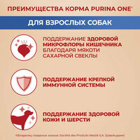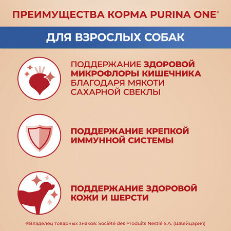 Корм Purina ONE для взрослых собак средних и крупных пород (> 10кг) - это высококачественное питание, разработанное экспертами Пурина для поддержания здоровой микрофлоры кишечника, необходимой для здоровья Вашей собаки. Баланс микрофлоры важен для здоровья пищеварительной системы, иммунитета и общего состояния собаки. Мякоть сахарной свеклы помогает поддерживать здоровую микрофлору кишечника, поддерживая Вашу собаку здоровой и энергичной каждый день.