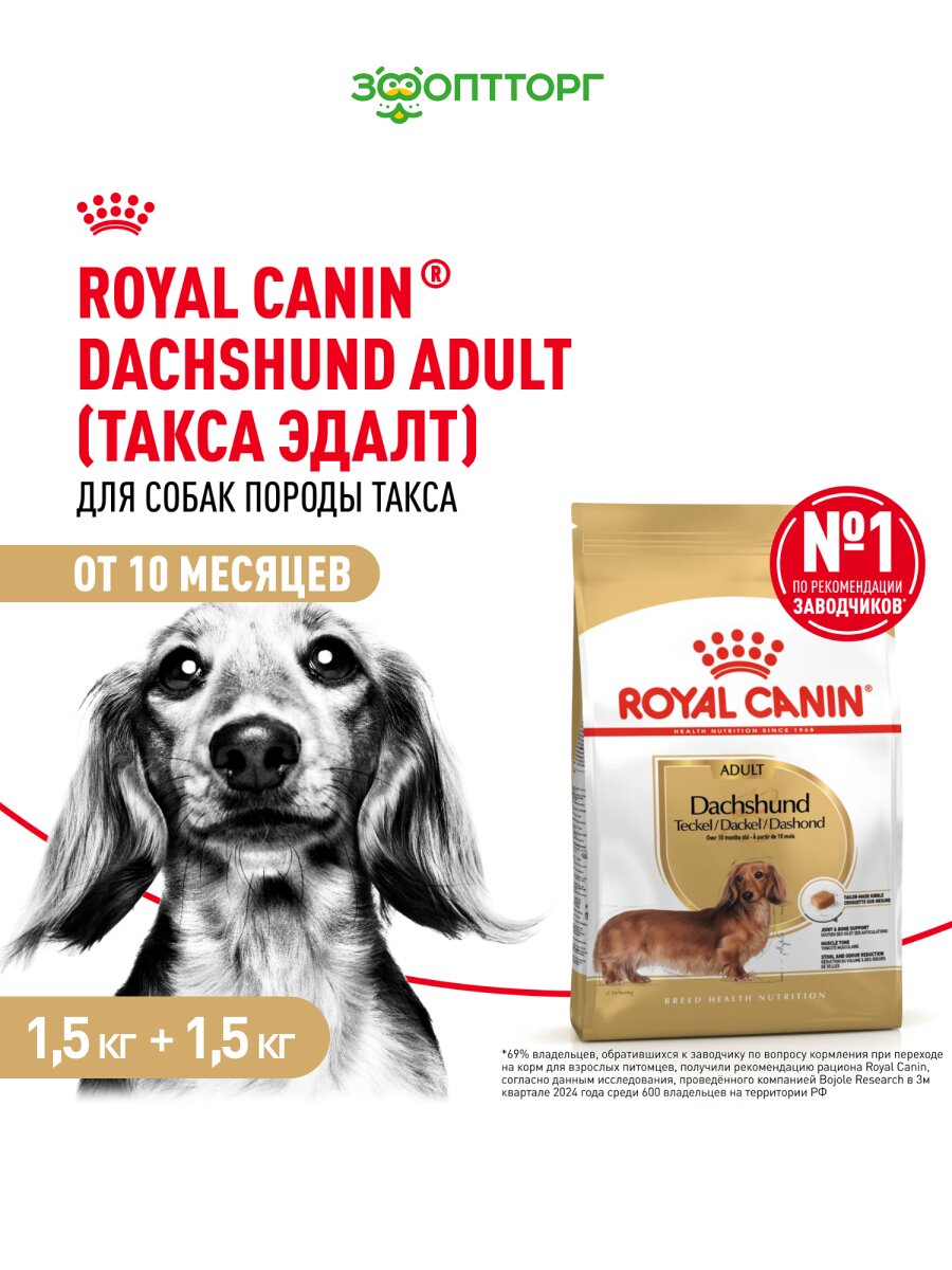 Купить Сухой корм Royal Canin Dachshund Adult для собак породы такса Птица, 1,5 кг х 2 шт. с доставкой по всей России. Сухой корм Royal Canin Dachshund Adult для собак породы такса Птица, 1,5 кг х 2 шт.: сравнение цен, характеристики, фото, актуальное наличие и цены.