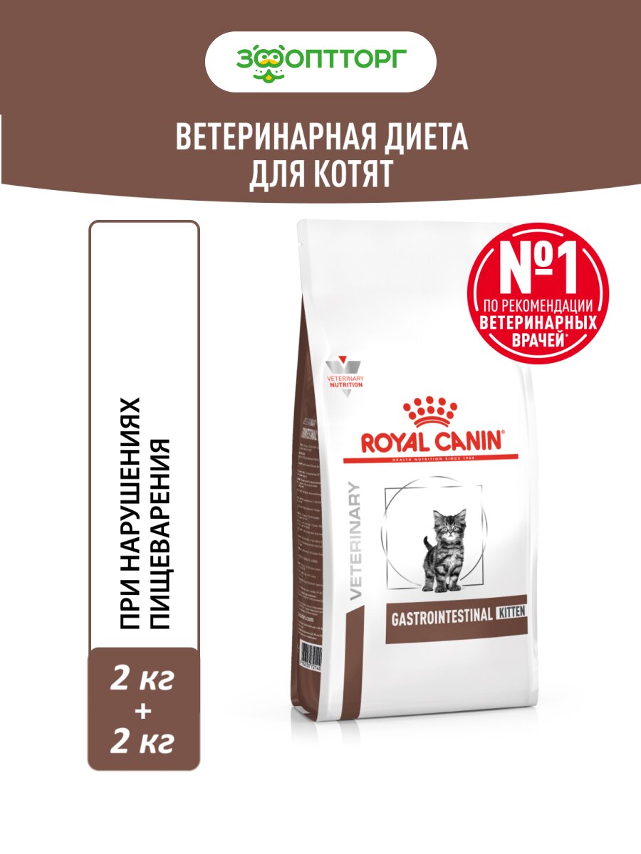 Сухой корм Royal Canin Gastrointestinal Kitten для котят при патологии ЖКТ Диетический, 2 кг. х 2 шт: сравнение цен, характеристики, фото, актуальное наличие и цены.