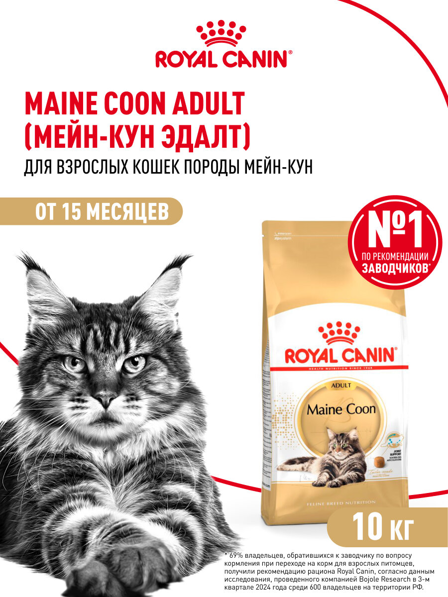 Сухой корм для кошек Royal Canin Adult для породы мейн кун, 10 кг: сравнение цен, характеристики, фото, актуальное наличие и цены.