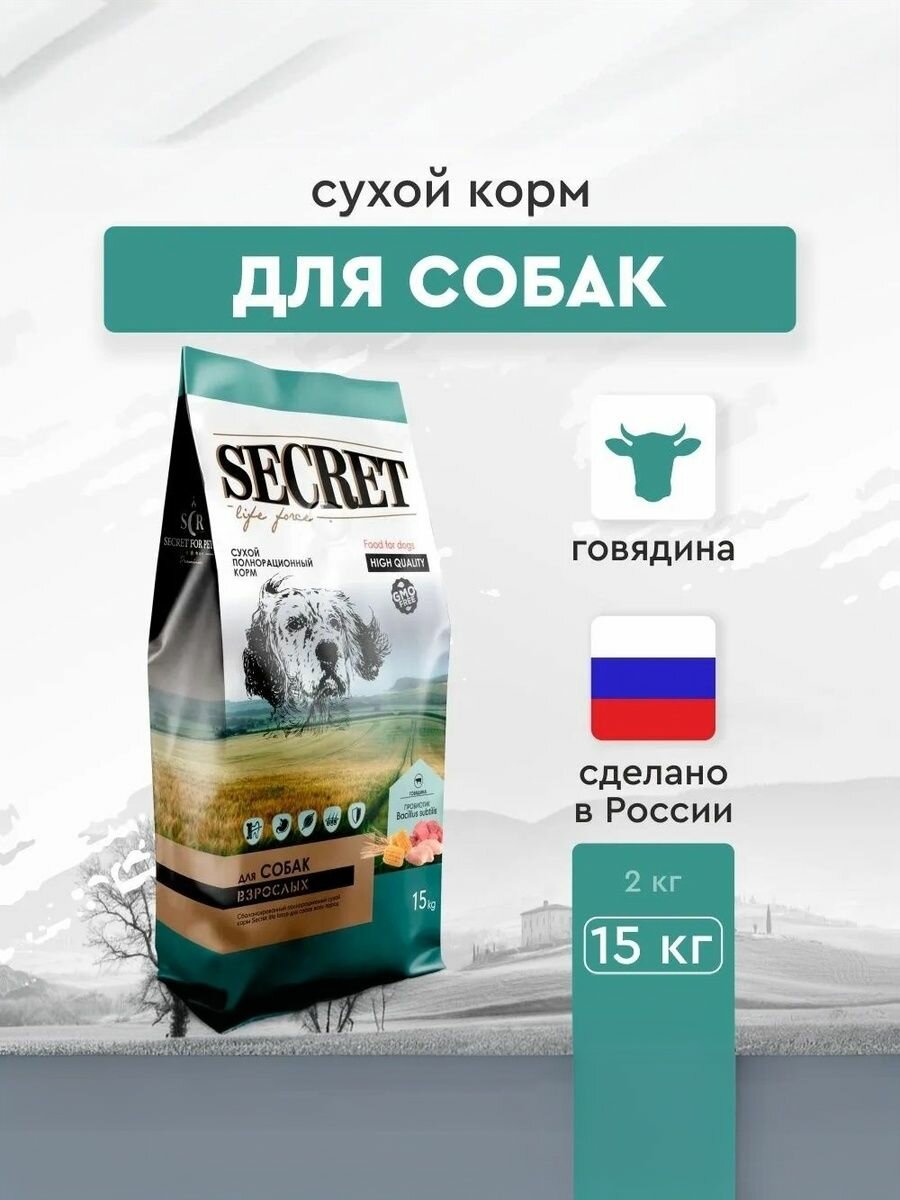 Сухой корм SECRET LIFE FORCE для взрослых собак всех пород с говядиной (15 кг): сравнение цен, характеристики, фото, актуальное наличие и цены.