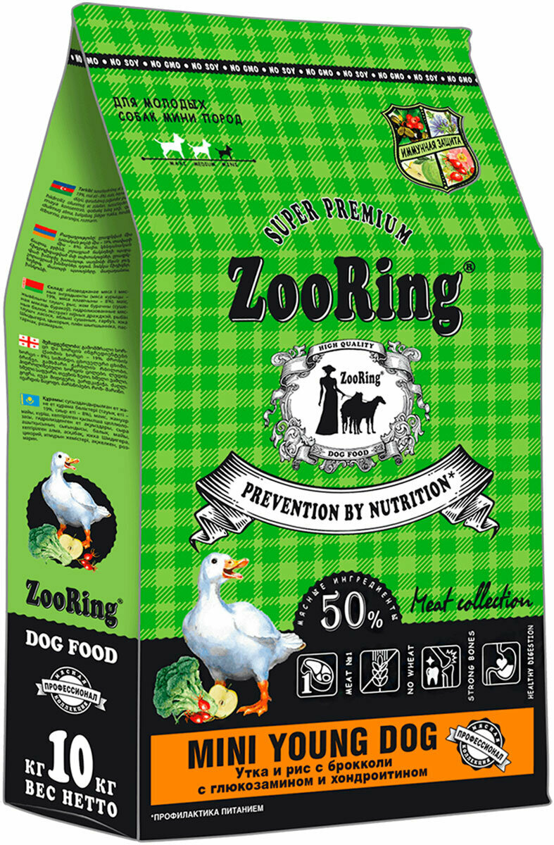 Купить Сухой корм Zooring Mini Young Dog для молодых собак маленьких пород с уткой, рисом, брокколи, глюкозамином и хондроитином, 10 кг с доставкой по всей России.