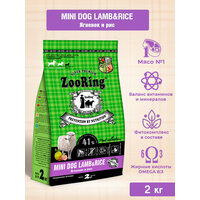 Сухой корм ZOORING DOG MINI LAMB & RICE для взрослых собак маленьких пород, с чувствительным пищеварением, с ягненком и рисом 2 кг