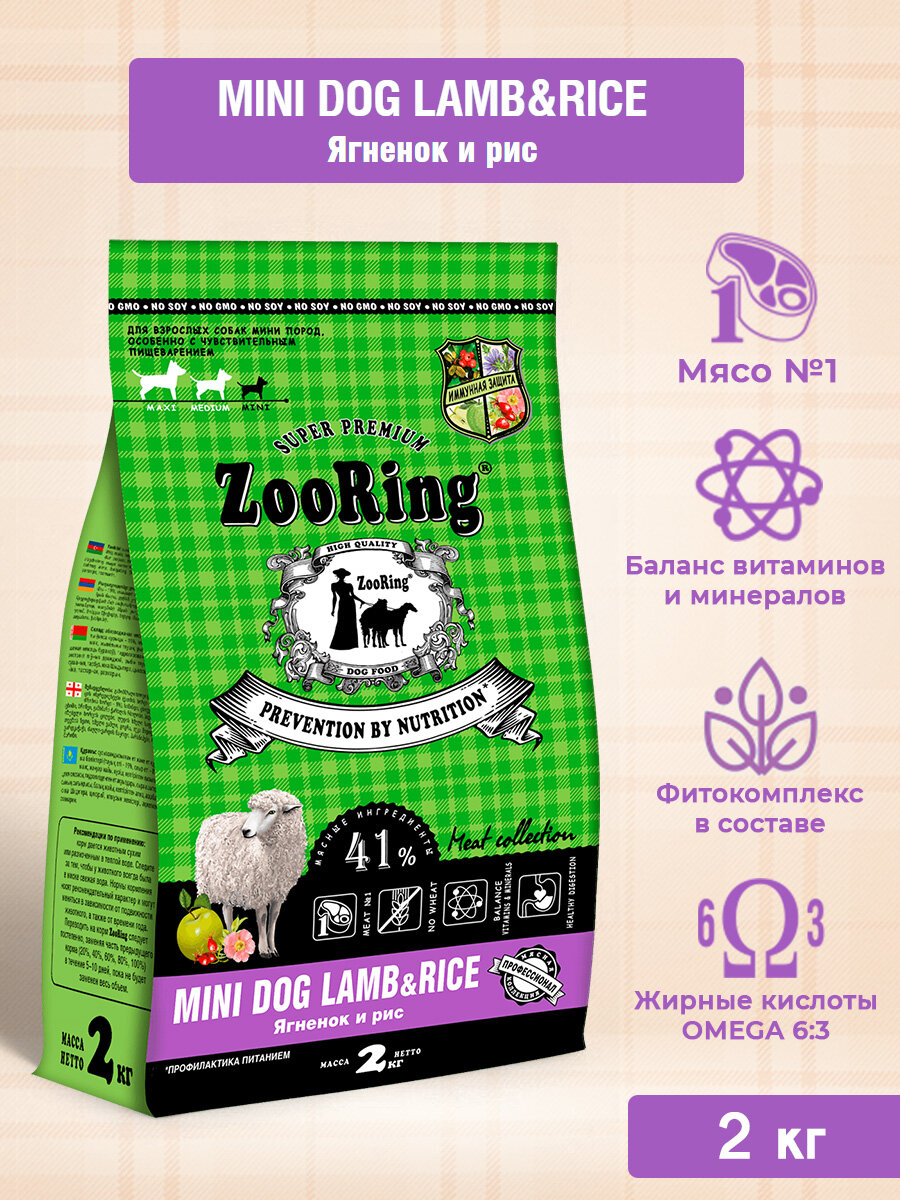 Сухой корм ZOORING DOG MINI LAMB & RICE для взрослых собак маленьких пород, с чувствительным пищеварением, с ягненком и рисом 2 кг: сравнение цен, характеристики, фото, актуальное наличие и цены.