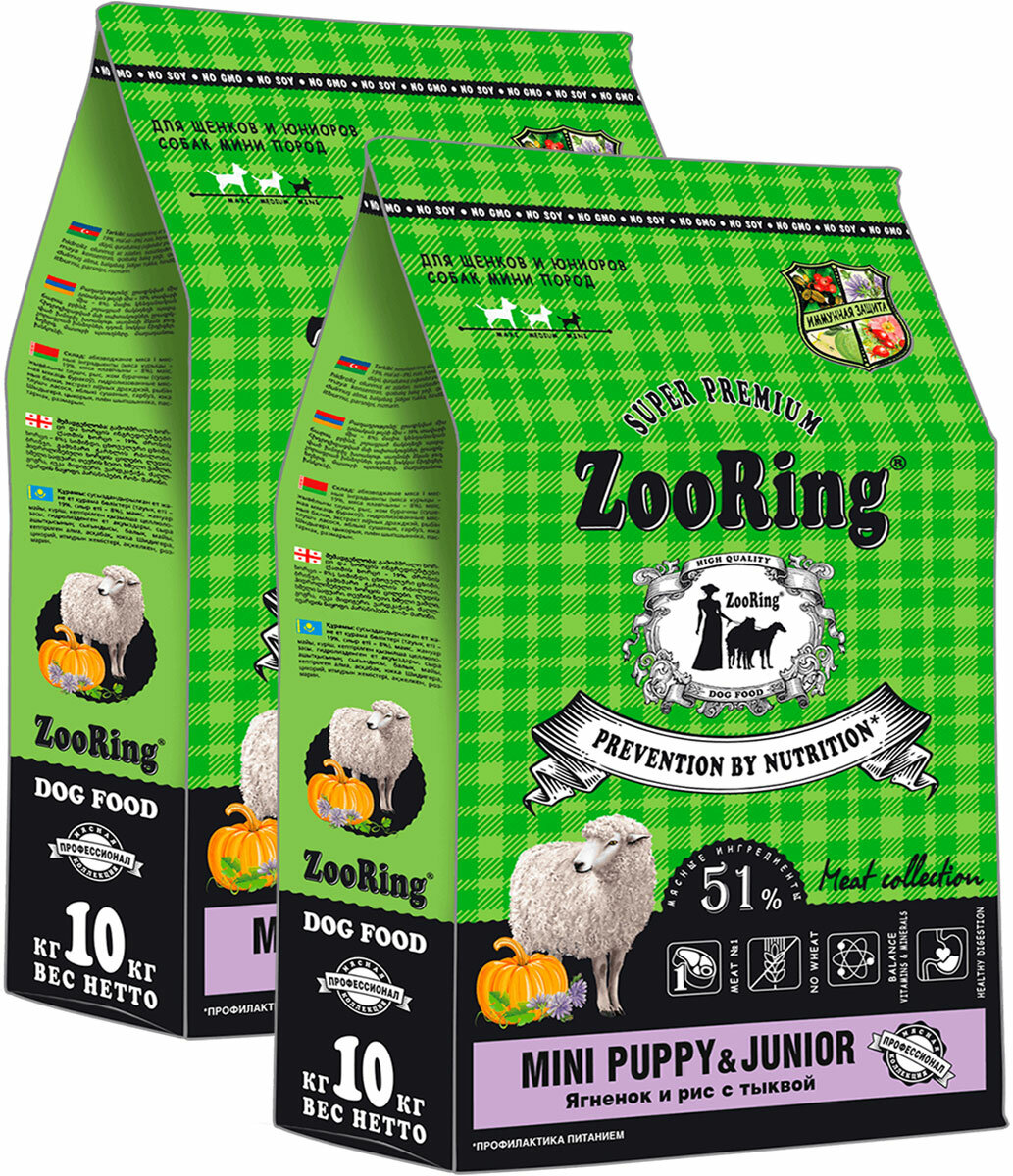 Сухой корм Zooring Mini Young Dog для щенков и юниоров маленьких пород с ягненком, рисом, тыквой, 10 кг 2 шт: сравнение цен, характеристики, фото, актуальное наличие и цены.