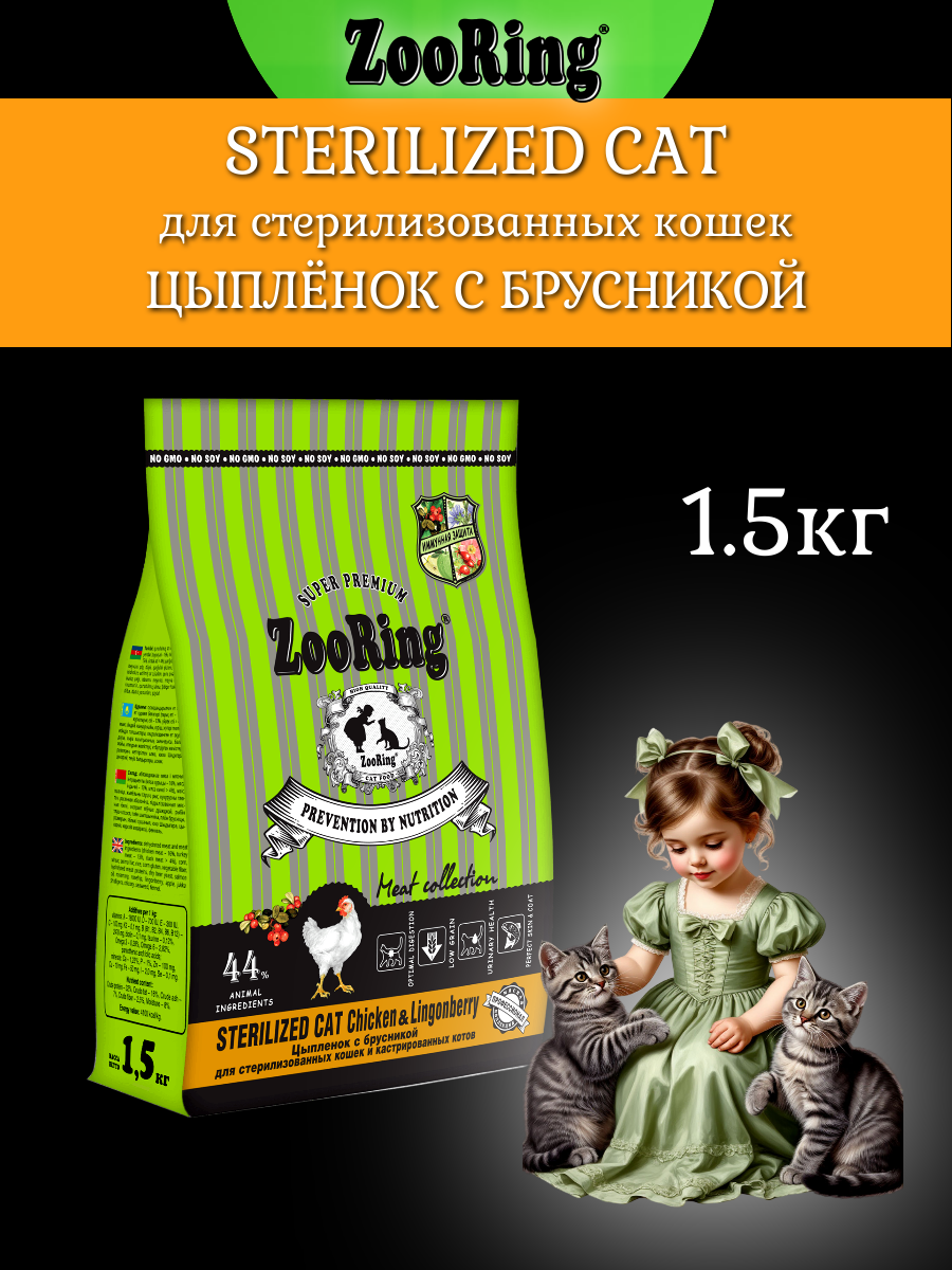 Сухой корм ZooRing Sterilized цыпленок с брусникой для стерилизованных кошек, 1,5кг: сравнение цен, характеристики, фото, актуальное наличие и цены.
