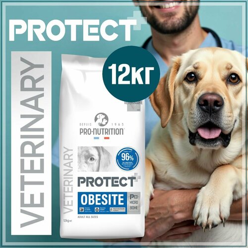 Сухой лечебный корм для взрослых и пожилых собак Flatazor Protect+ Obesite, ветеринарная диета для собак с лишним весом, c сахарным диабетом, Франция, 12кг.