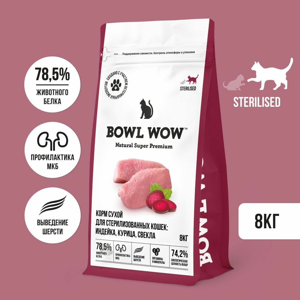 Купить Корм для кошек сухой BOWL WOW для стерилизованных и с чувствительным пищеварением с индейкой, курицей и добавлением свеклы 8 кг с доставкой по всей России. Корм для кошек сухой BOWL WOW для стерилизованных и с чувствительным пищеварением с индейкой, курицей и добавлением свеклы 8 кг: сравнение цен, характеристики, фото, актуальное наличие и цены.