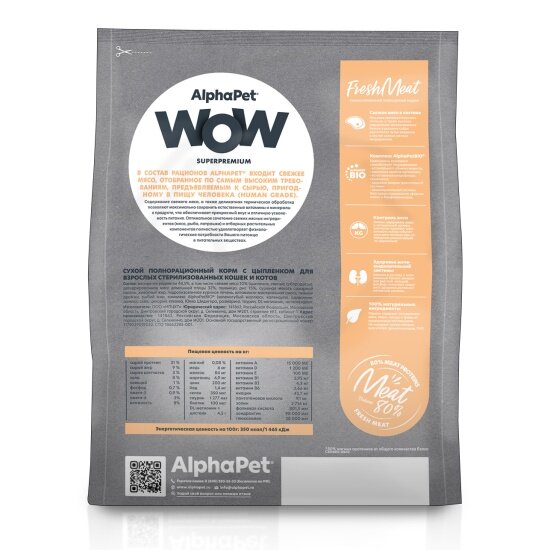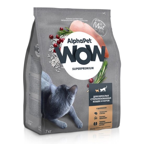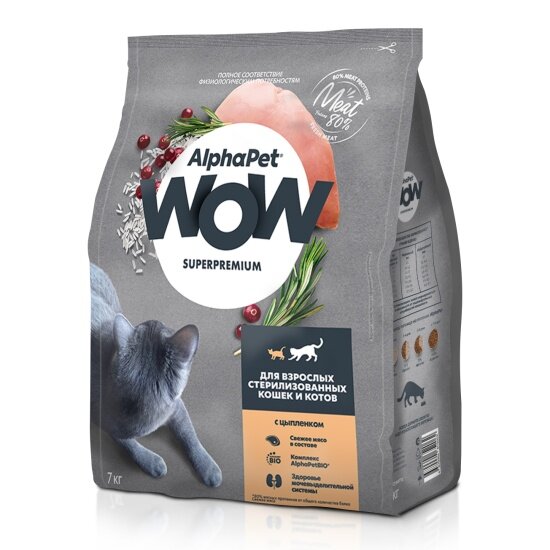 Купить Корм сухой Alphapet WOW Superpremium полнорационный для взрослых стерилизованных кошек (c цыпленком) 7 кг с доставкой по всей России. Корм сухой Alphapet WOW Superpremium полнорационный для взрослых стерилизованных кошек (c цыпленком) 7 кг: сравнение цен, характеристики, фото, актуальное наличие и цены.