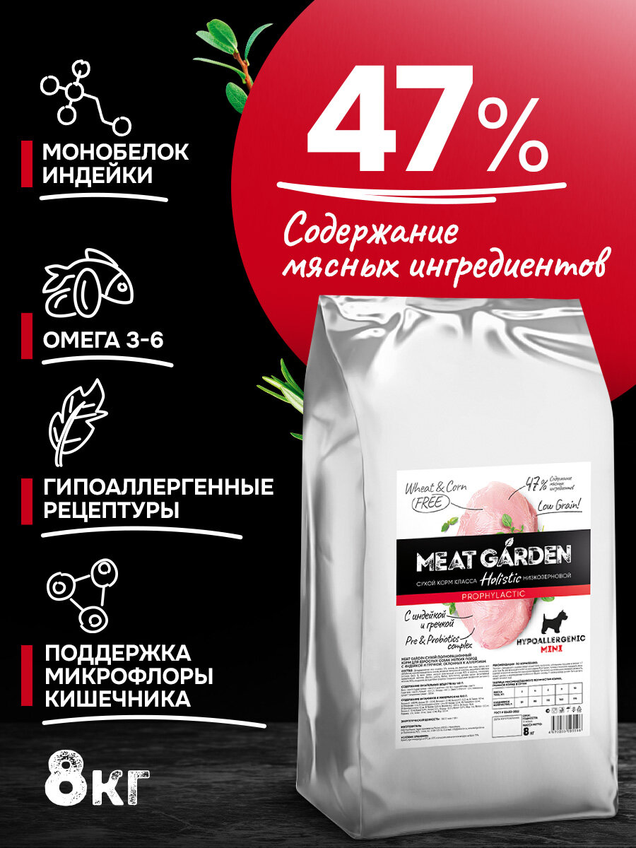 Купить Сухой полнорационный корм холистик Meat Garden для собак мелких пород склонных к аллергии Индейка с Гречкой 8кг с доставкой по всей России. Сухой полнорационный корм холистик Meat Garden для собак мелких пород склонных к аллергии Индейка с Гречкой 8кг: сравнение цен, характеристики, фото, актуальное наличие и цены.