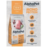 Сухой полнорационный корм MONOPROTEIN из индейки для взрослых собак мелких пород AlphaPet Superpremium 1,5 кг: сравнение цен, характеристики, фото, актуальное наличие и цены.