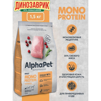 Купить Сухой полнорационный корм MONOPROTEIN из индейки для взрослых собак мелких пород AlphaPet Superpremium 1,5 кг с доставкой по всей России.