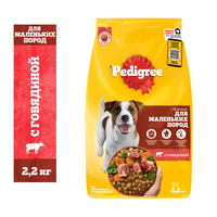 Купить Сухой полнорационный корм PEDIGREE для взрослых собак маленьких пород, с говядиной, 3 шт по 2.2 кг с доставкой по всей России.