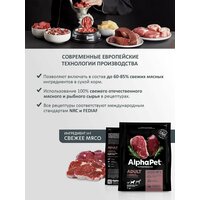 Корм AlphaPet Superpremium на основе говядины и потрошков, разработан для взрослых собак средних пород компанией Alphapet. Применяется швейцарская технология производства, позволяющей включать свежее мясо в рацион и гарантирующая высокое качество. Корм для собак сухой содержит 78% натурального мясного белка. Сухой корм для собак быстро утоляет голод. Собачий корм с увеличенным содержанием Омега-3 жирных кислот. Товары для животных c биологически активной добавкой AlphapetBIO укрепляют иммунитет. Зоотовары для собак поддерживают здоровье сердца. Употребление полнорационного корма для собак премиум класса AlphaPet Superpremium укрепляет кости, суставы и связки. Корма для собак средних пород уменьшают вероятность получить травму. Специальная бережная технология обработки компонентов сохраняет пищевые свойства натурального свежего мяса. Производитель премиум корма АльфаПет отказался от ГМО, искусственных красителей, ароматизаторов, консервантов. Упор на качество и физиологическую адекватность.