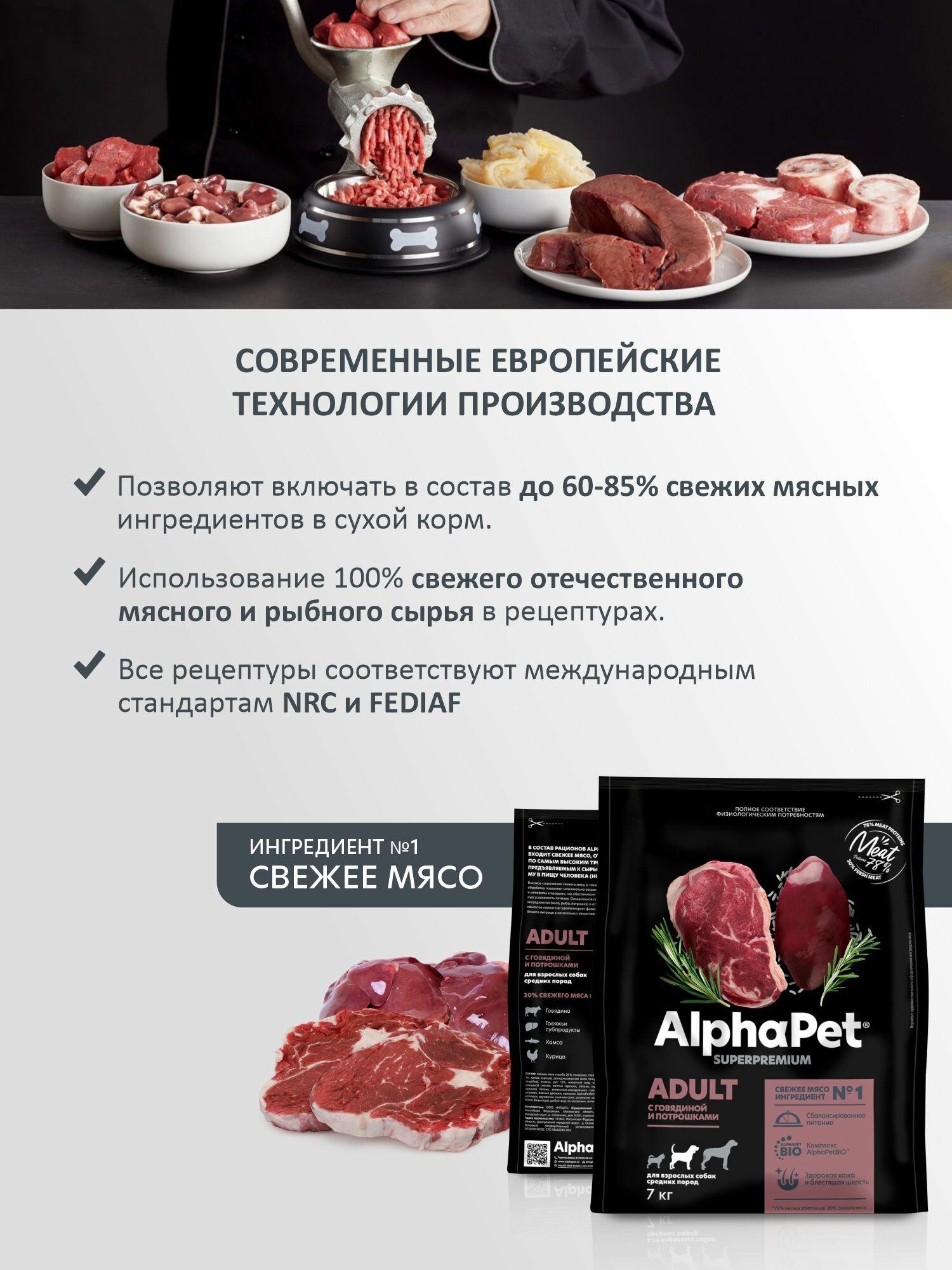 Купить Сухой полнорационный корм с говядиной и потрошками для взрослых собак средних пород AlphaPet Superpremium 7 кг с доставкой по всей России. Сухой полнорационный корм с говядиной и потрошками для взрослых собак средних пород AlphaPet Superpremium 7 кг: сравнение цен, характеристики, фото, актуальное наличие и цены.