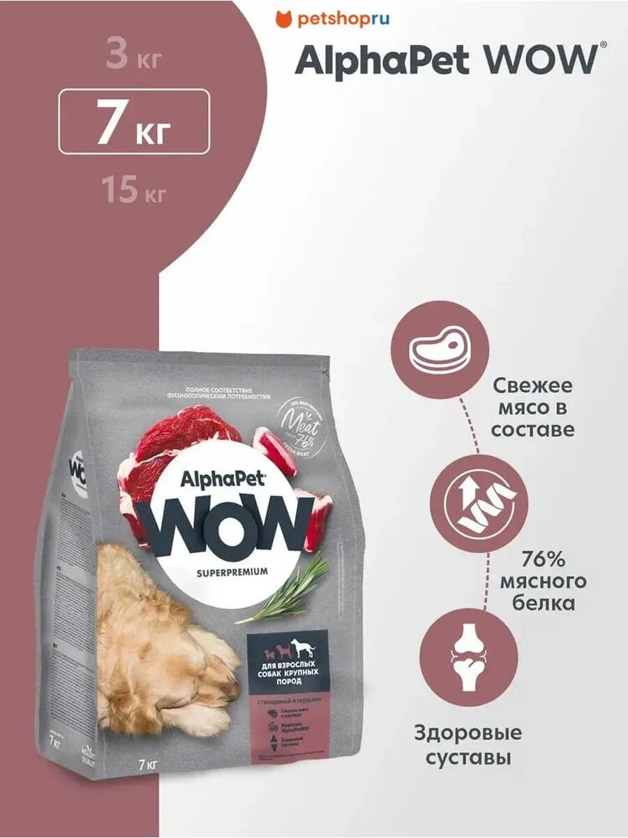 Купить AlphaPet WOW Сухой корм с говядиной для собак крупных пород, 7кг с доставкой по всей России. AlphaPet WOW Сухой корм с говядиной для собак крупных пород, 7кг: сравнение цен, характеристики, фото, актуальное наличие и цены.