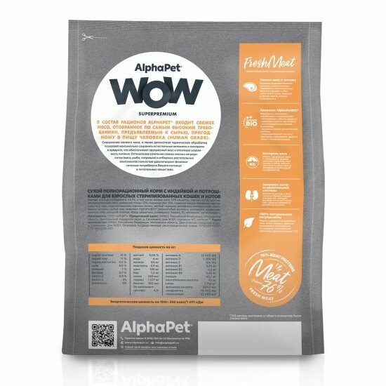 Купить Корм сухой Alphapet WOW Superpremium полнорационный для взрослых стерилизованных кошек (с индейкой и потрошками) 7 кг с доставкой по всей России. Корм сухой Alphapet WOW Superpremium полнорационный для взрослых стерилизованных кошек (с индейкой и потрошками) 7 кг: сравнение цен, характеристики, фото, актуальное наличие и цены.