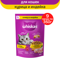 Купить Сухой полнорационный корм WHISKAS для взрослых кошек и котов с курицей, индейкой и вкусными подушечками, 9 шт по 350 г с доставкой по всей России. Сухой полнорационный корм WHISKAS для взрослых кошек и котов с курицей, индейкой и вкусными подушечками, 9 шт по 350 г: сравнение цен, характеристики, фото, актуальное наличие и цены.
