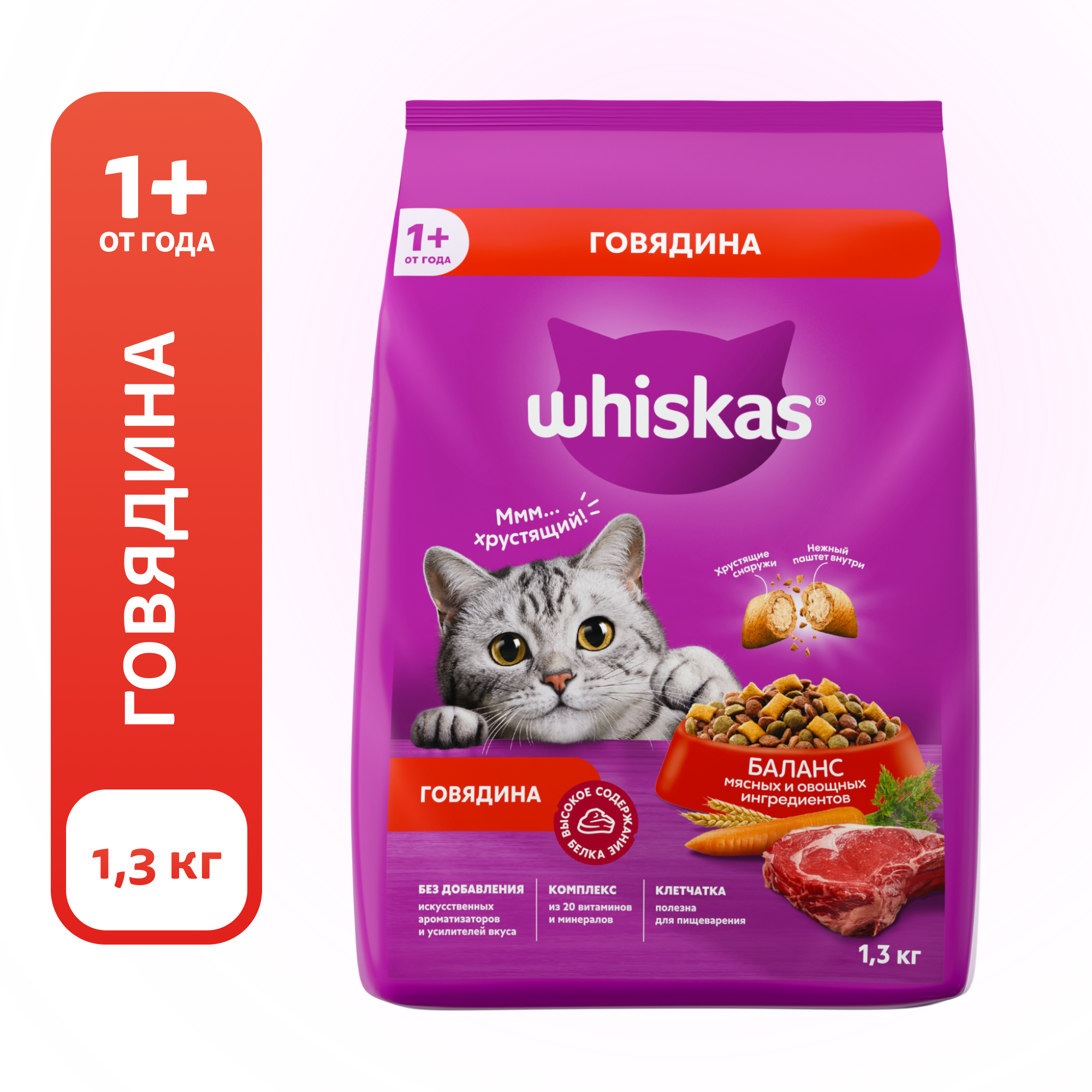 Купить Сухой полнорационный корм WHISKAS для взрослых кошек. «Вкусные подушечки с нежным паштетом. Аппетитный обед с говядиной», 4 шт по 1.3 кг с доставкой по всей России. Сухой полнорационный корм WHISKAS для взрослых кошек. «Вкусные подушечки с нежным паштетом. Аппетитный обед с говядиной», 4 шт по 1.3 кг: сравнение цен, характеристики, фото, актуальное наличие и цены.